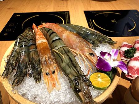 蝦蝦肉肉鍋($690):6oz台灣梅花豬+深海大草蝦*1/阿根廷天使紅蝦*2/汶萊藍鑽蝦*3/台灣草蝦*3